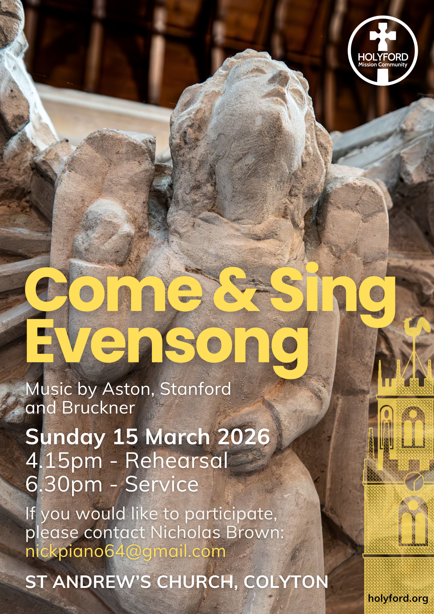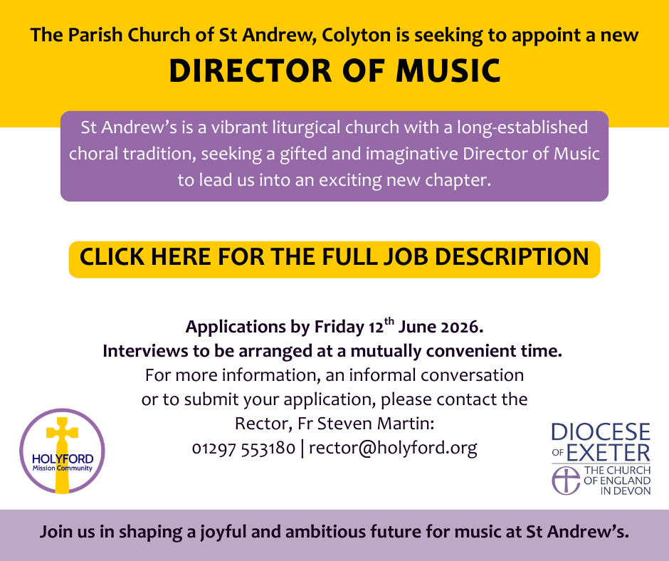 Information on all church services happening this week in the Holyford Mission Community, from traditional Sunday morning worship to midweek prayer services and special occasions. For the pew sheet with readings, please see the services page.